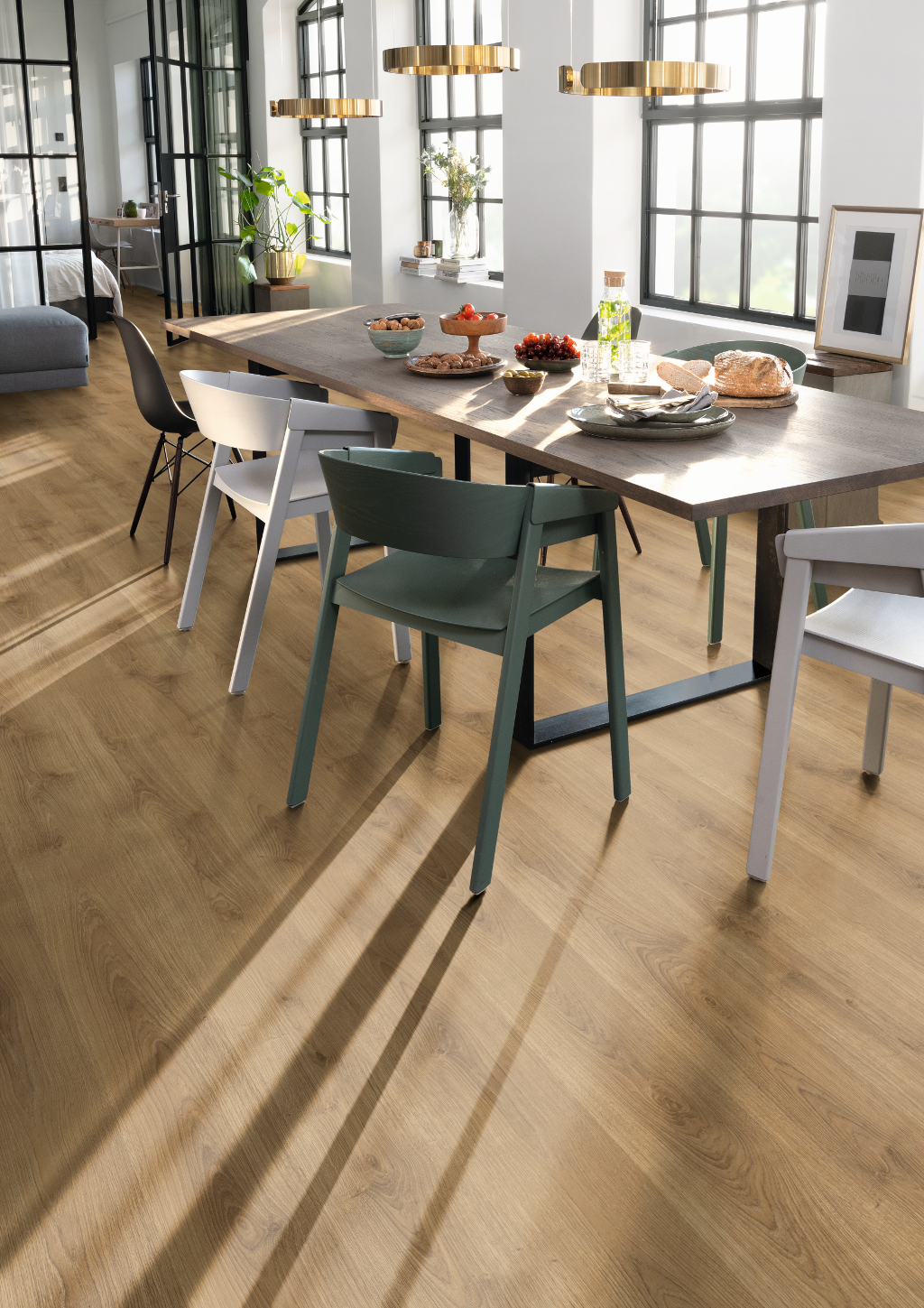 Stejar Nord natur este un decor foarte natural de stejar, într-o nuanță natur caldă. Aspectul este simplu, iar culoarea este maro cald. Acest lucru conferă încăperii o suprafață de pardoseală autentică și confortabilă, care poate fi combinată cu culori deschise și cu lemn.